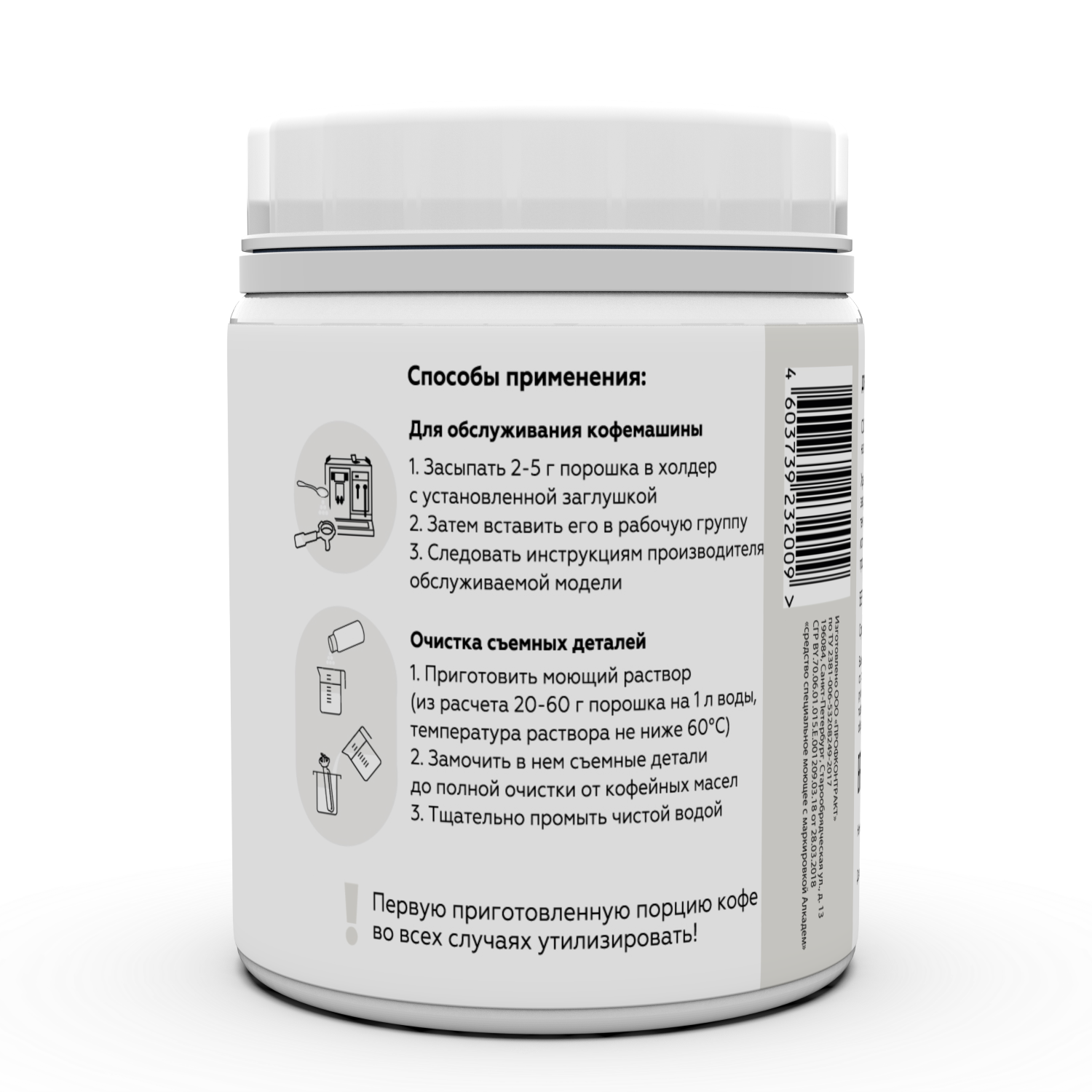 Порошковое щелочное моющее средство для автоматических кофемашин.